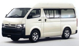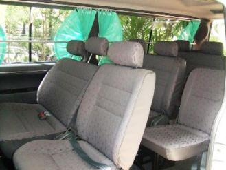 Toyota Hiace Diesel - plenty of leg room, blinds, individual air-con, DVD - practical and comfortable.